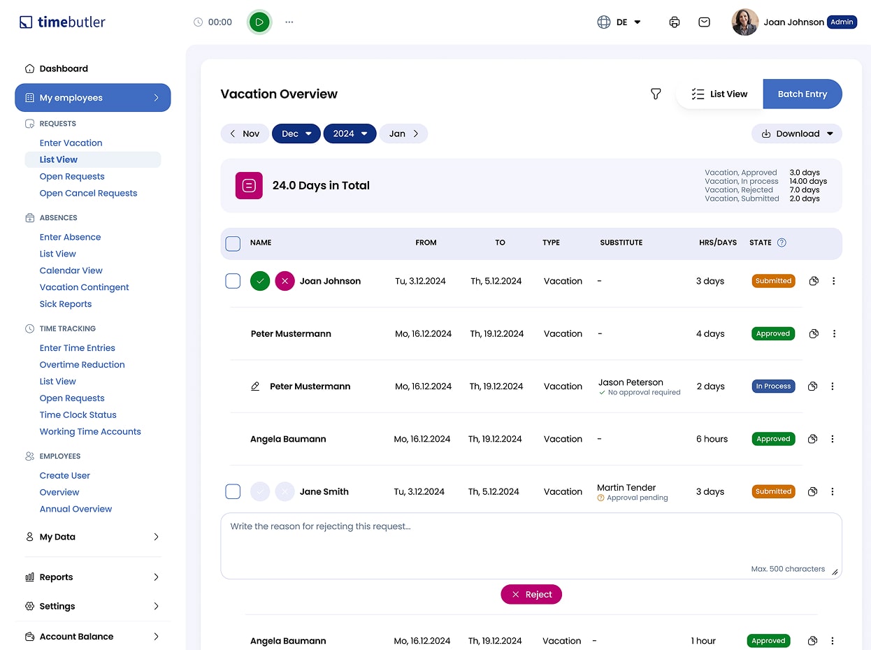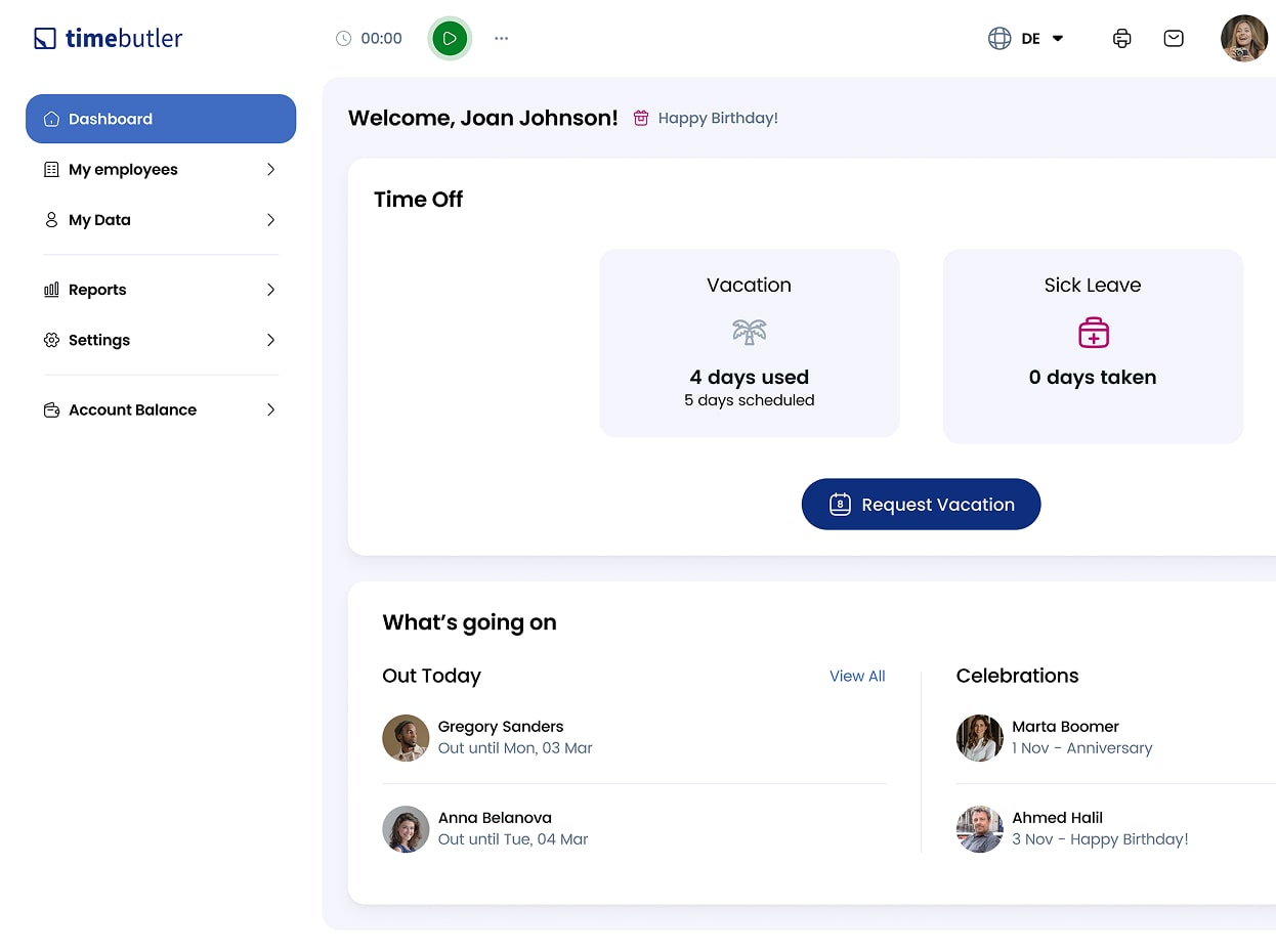 Simplify scheduling, approvals, and time tracking with Timebutler’s powerful and easy-to-use features.