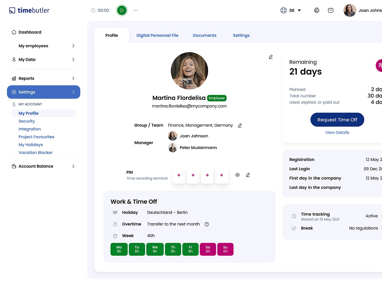 Yes. Timebutler can help you manage employee hours and optimize workforce productivity. It offers features for vacation planning, absence management, and digital personnel files for streamlining employee information. See all Timebutler features for businesses of all sizes.