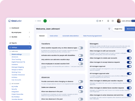 Finally, a system that adapts to your needs. Keep your team organized and your business running smoothly with Timebutler.