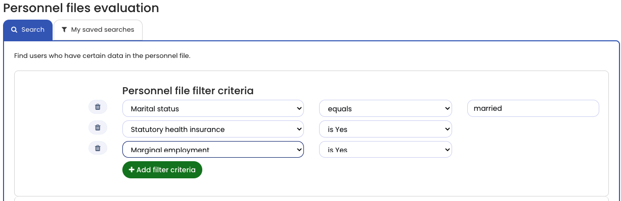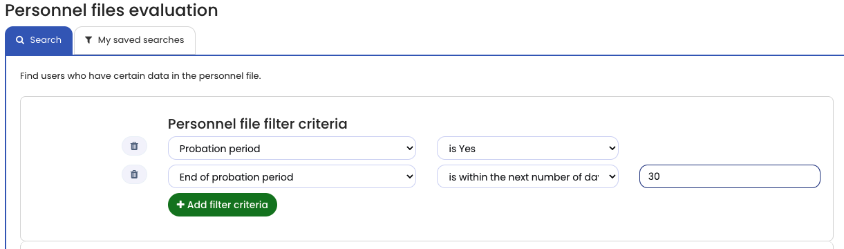 In the Digital Personnel File filters section, you can add one or more filter conditions: