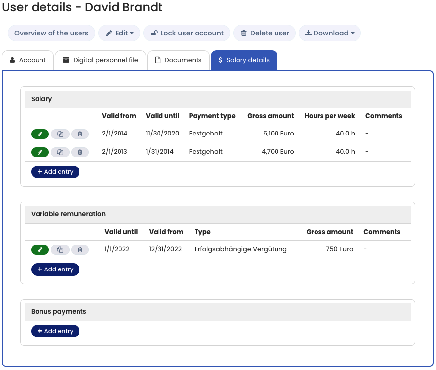 - Click Add entry to create a new salary entry.