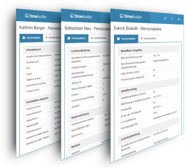 With Timebutler, you can maintain a Digital Personnel File for every employee.