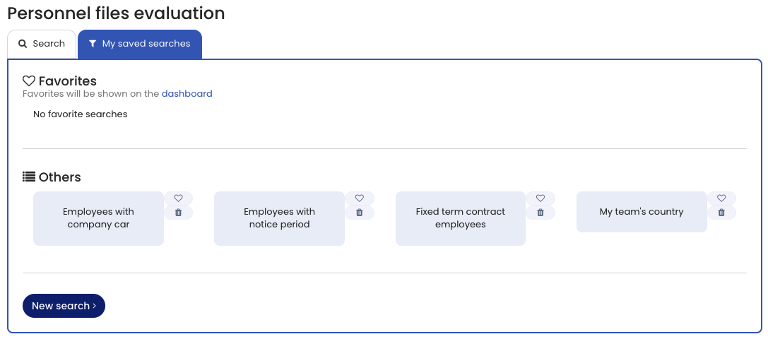 Favorites appear on the dashboard and allow you to start the analysis directly with one click.