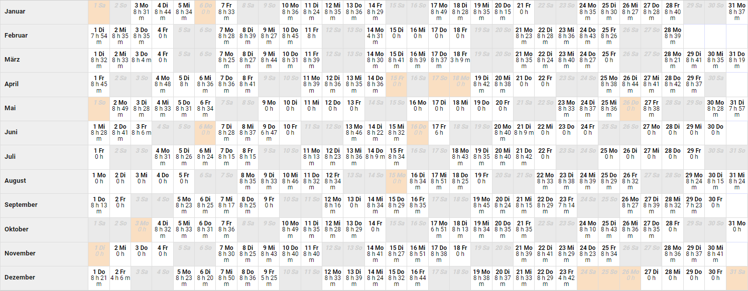 If you move your mouse over the calendar, you get [additional information about overtime(/time-tracking/calendar-view/details-for-a-calendar-day/) for each calendar day. And if you click a day in the calendar, you see the [day’s work time entries(/time-tracking/calendar-view/view-and-edit-working-time-entries/).