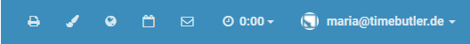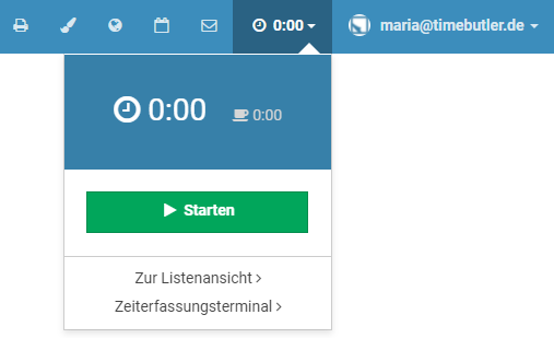 After you sign in to Timebutler, all pages show a “ 00:00” for the time clock at the top right: