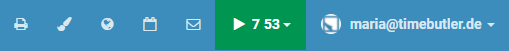 In the top-right bar on all pages, the time clock display is now green and indicates that the time clock is running: