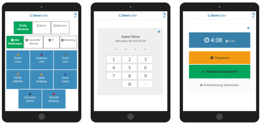 Timebutler offers a fully integrated time tracking terminal solution.