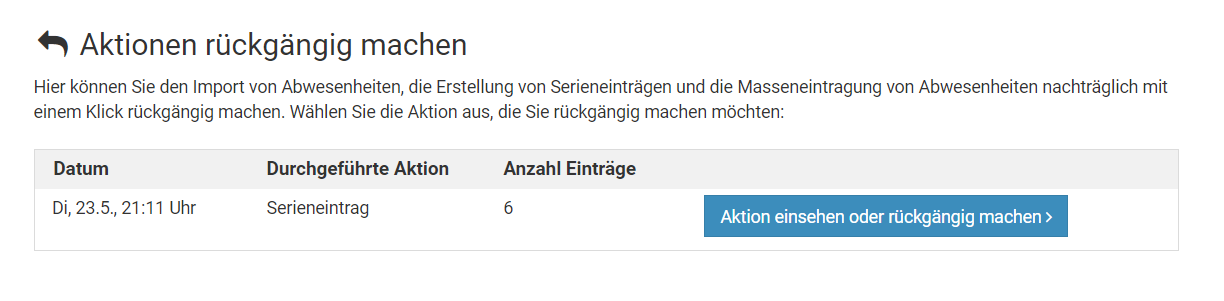 - You can only undo actions performed up to a maximum of 14 days ago. After that period, you can only delete entries individually. This also applies to the individual items within a recurring series.