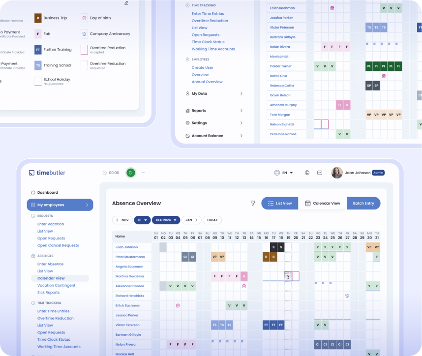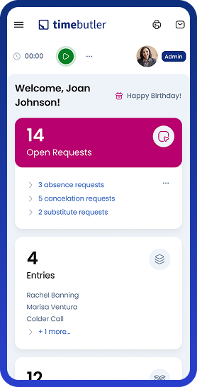 Timebutler’s fully optimized for use across a wide range of devices. All features are accessible directly from your smartphone or tablet – no app is required.
